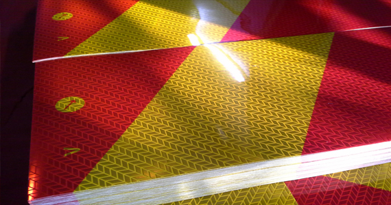 A line of High Intensity Prismatic work zone sheetings featuring a metalized, single-ply construction and pre-printed chevron stripes.